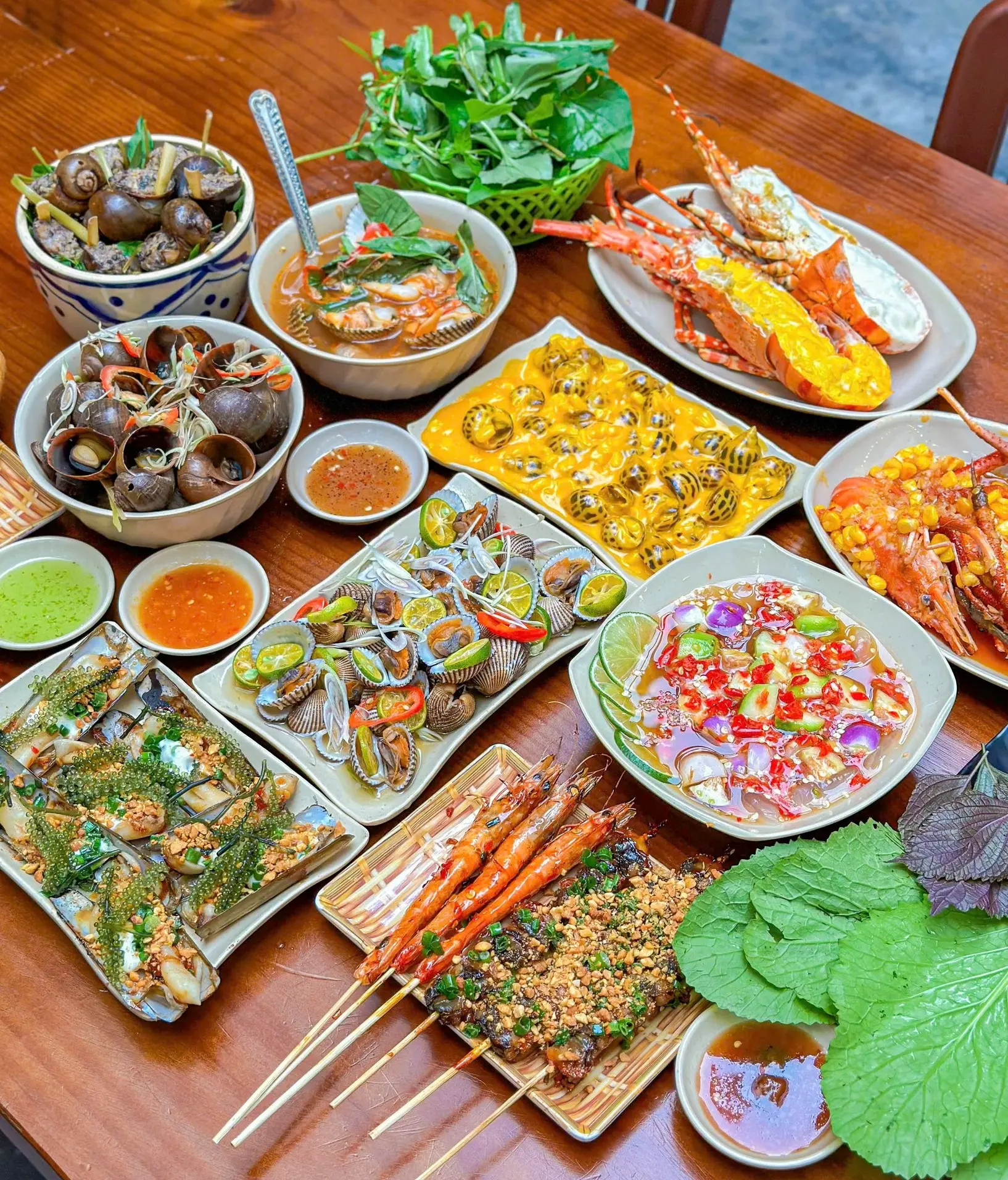 Món nổi bật gồm ốc hương nướng muối ớt, ốc gai nướng mỡ hành, mực hấp gừng. Hải sản tươi, giá hợp lý và phục vụ nhanh là lý do quán luôn đông khách.