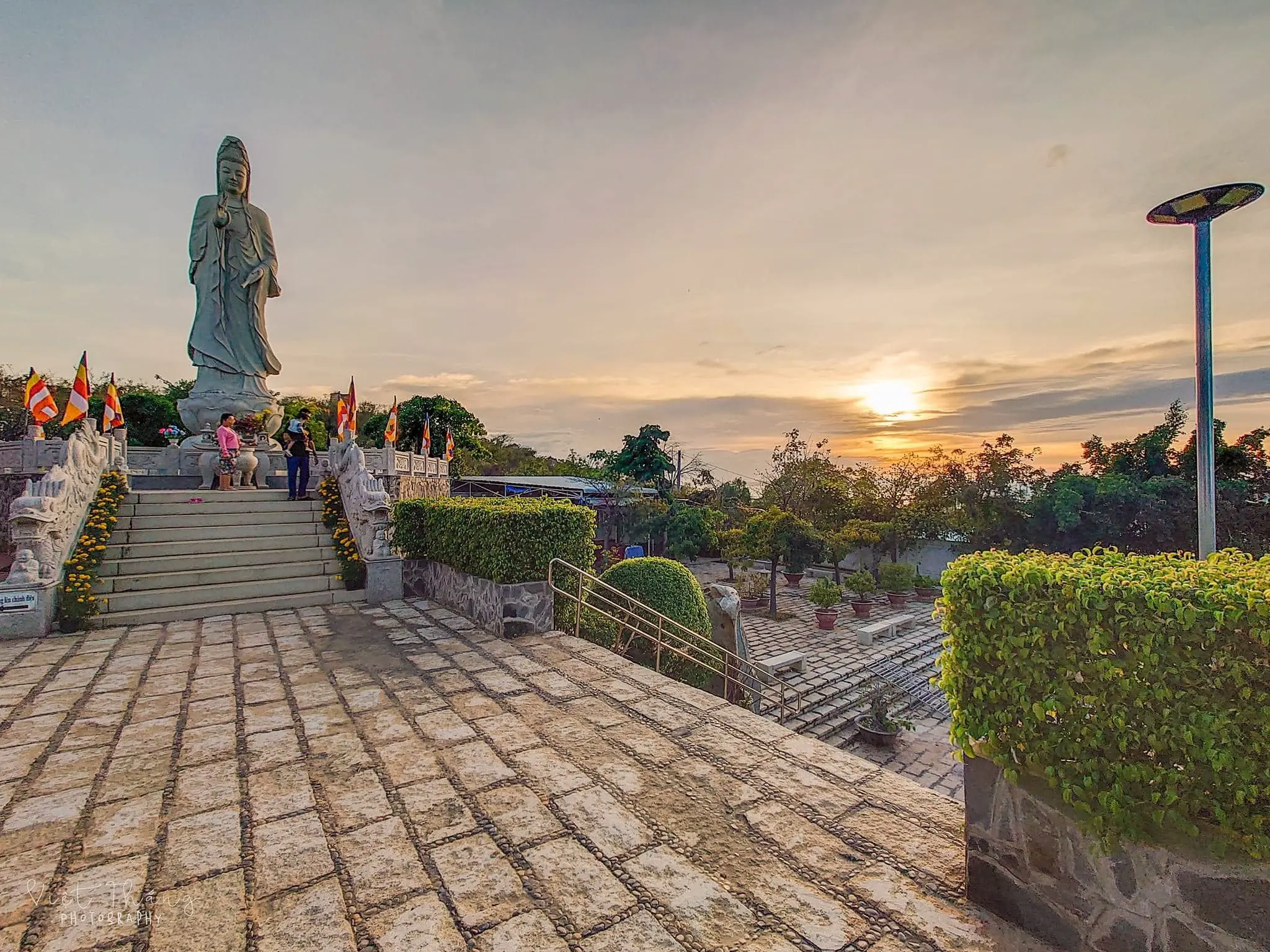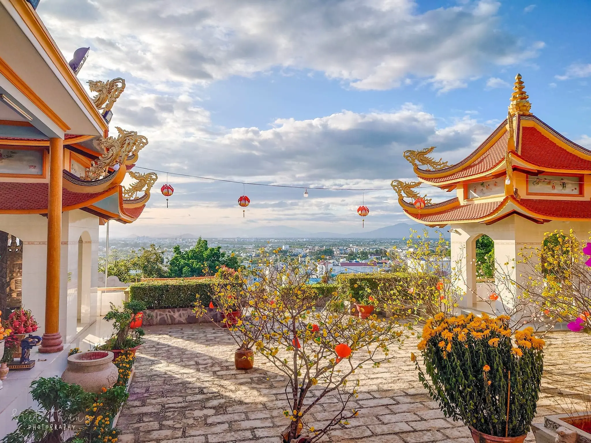 Từ sân chùa, bạn có thể phóng tầm mắt ngắm nhìn toàn bộ thành phố Phan Thiết, xa xa là biển xanh và những chiếc thuyền lênh đênh. Cảnh sắc hữu tình ấy mang đến sự thư giãn tuyệt đối sau những ngày bộn bề công việc.