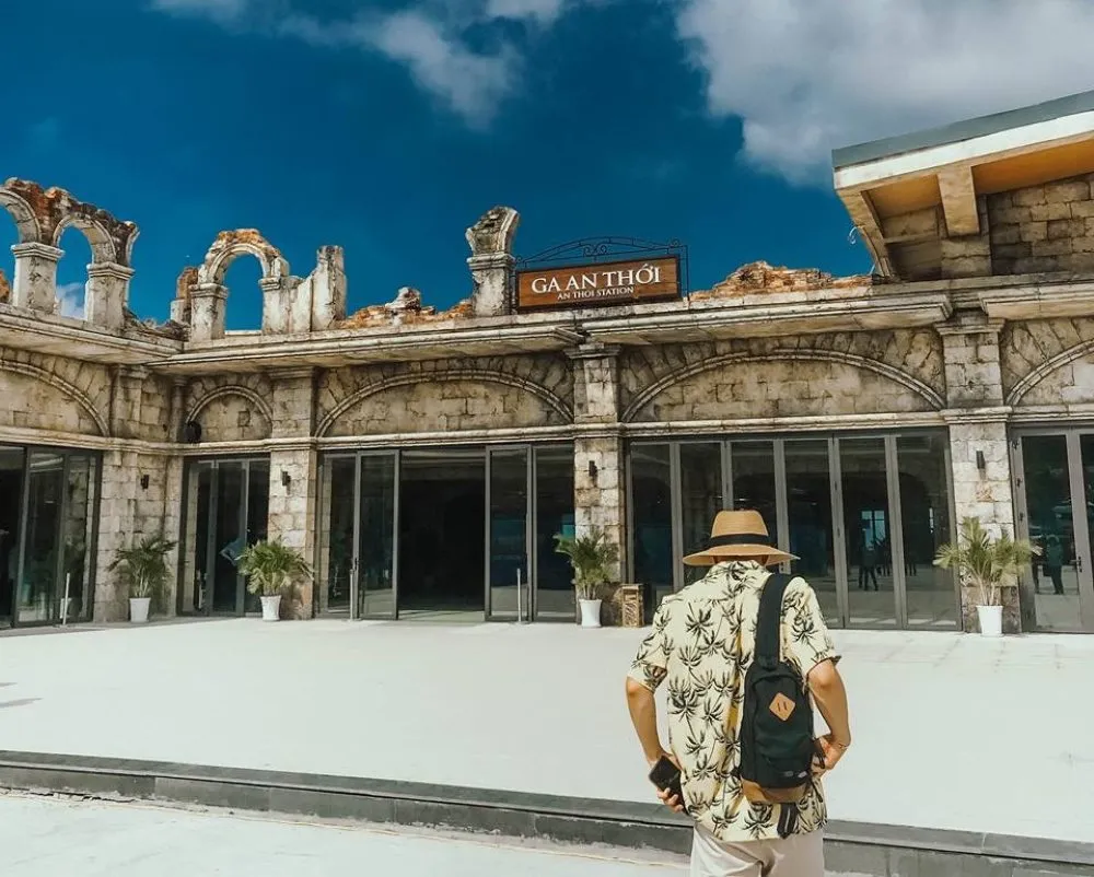 Ga An Thới – điểm khởi hành của cáp treo Hòn Thơm. Đây không chỉ là trạm trung chuyển mà còn là địa điểm check-in cực hot. Ga An Thới nổi bật với không gian rộng lớn, các cột đá, vòm cong và sắc nâu trầm cổ kính. Nơi đây thường xuyên xuất hiện trên các bức ảnh du lịch và là điểm dừng chân yêu thích của giới trẻ. Nếu bạn đang tìm kiếm một background độc lạ để “sống ảo”. Đừng bỏ lỡ ga An Thới trong chuyến khám phá quần đảo An Thới Phú Quốc.