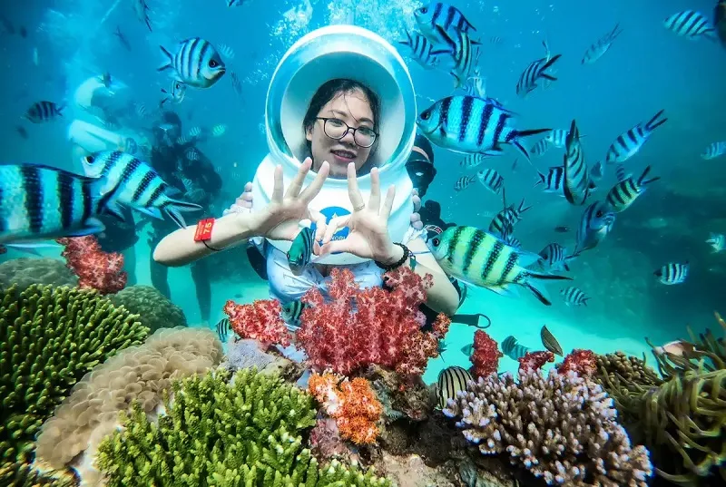 Du khách có thể lựa chọn lặn ống thở (snorkeling) hoặc lặn bình dưỡng khí (diving) tùy theo nhu cầu và khả năng. Đây là cơ hội tuyệt vời để khám phá thế giới dưới đại dương ngay tại quần đảo An Thới.
