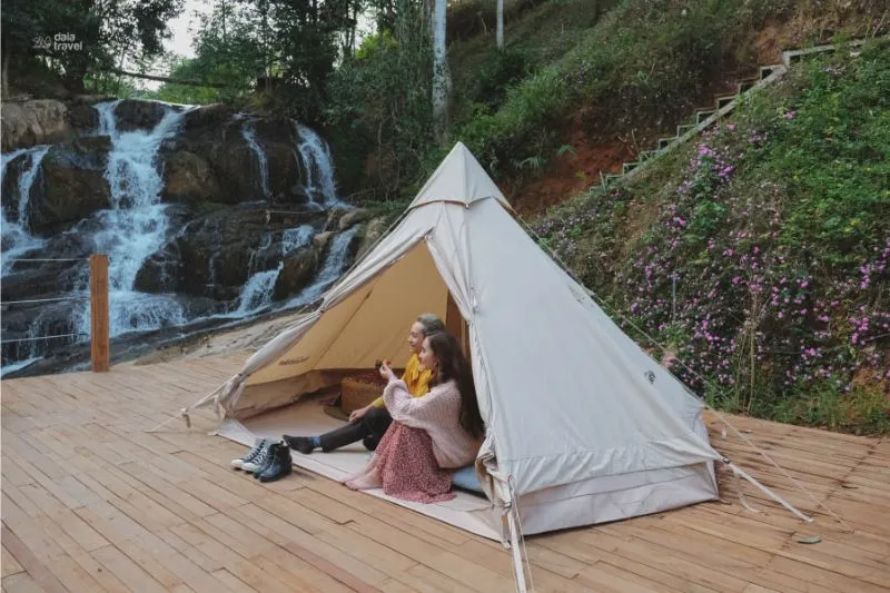 Khu vực dưới chân thác là nơi lý tưởng để tổ chức các hoạt động cắm trại, dã ngoại hay tiệc BBQ. Với không gian rộng rãi, thoáng đãng và gần gũi với thiên nhiên, du khách có thể tận hưởng những giây phút thư giãn bên gia đình và bạn bè.
