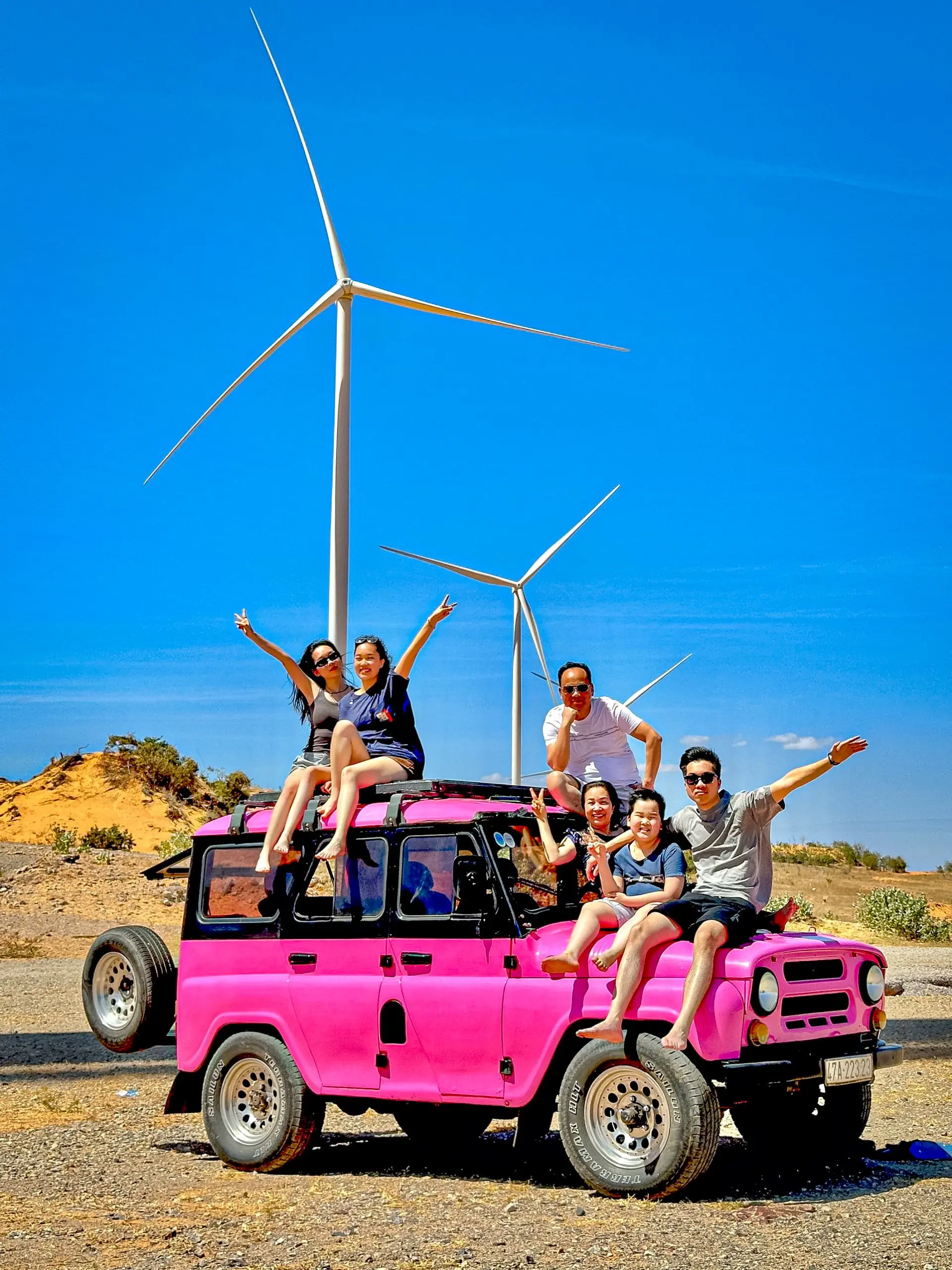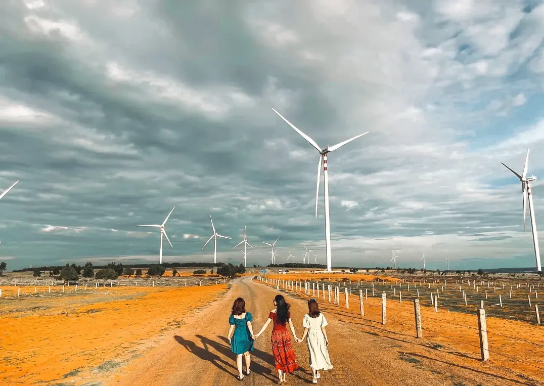 Những cánh đồng điện gió nằm giữa đồi cát trắng tạo nên khung cảnh rất “Tây” – như một góc trời châu Âu thu nhỏ. Vào buổi sáng sớm hoặc chiều hoàng hôn, ánh nắng hắt nhẹ lên cánh quạt khổng lồ, tạo nên những bức ảnh “nghìn like”.
