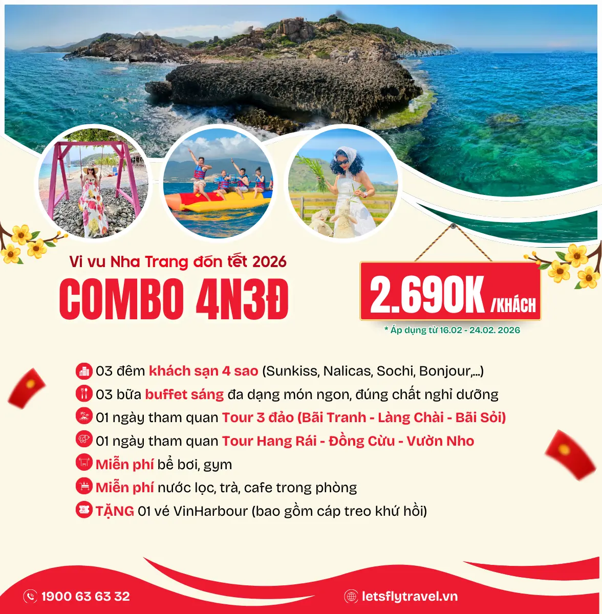 Let’s Fly Travel – đơn vị tổ chức tour Nha Trang uy tín hàng đầu. Liên hệ đặt combo ngay hôm nay để nhận ưu đãi tốt nhất! Hotline: 1900 63 63 32
