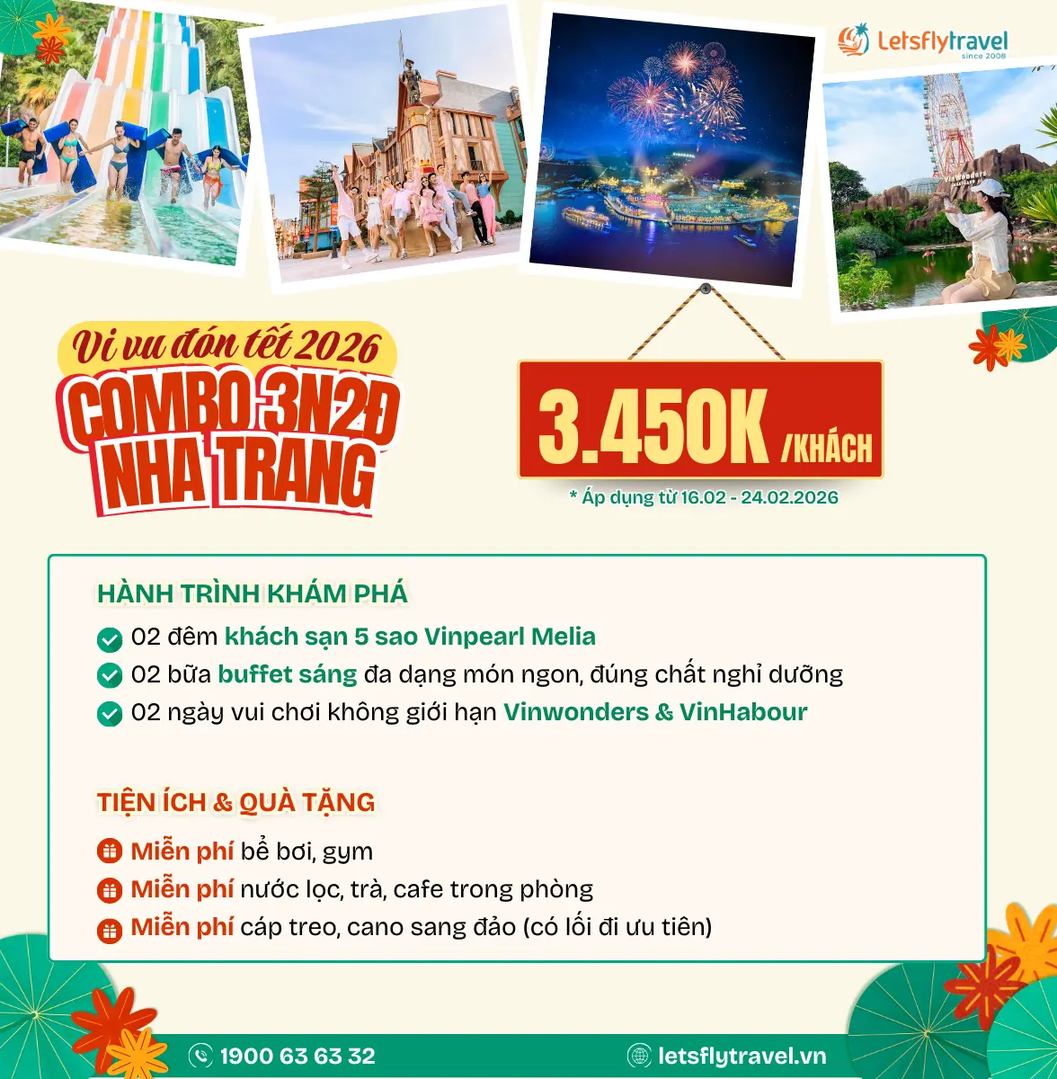 Let’s Fly Travel – đơn vị tổ chức tour Nha Trang uy tín hàng đầu. Liên hệ đặt combo ngay hôm nay để nhận ưu đãi tốt nhất! Hotline: 1900 63 63 32