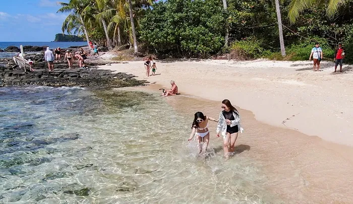 - Tắm biển: Nước biển ở đây trong vắt, chỉ cần lội ra vài mét bạn đã thấy cá bơi quanh chân.