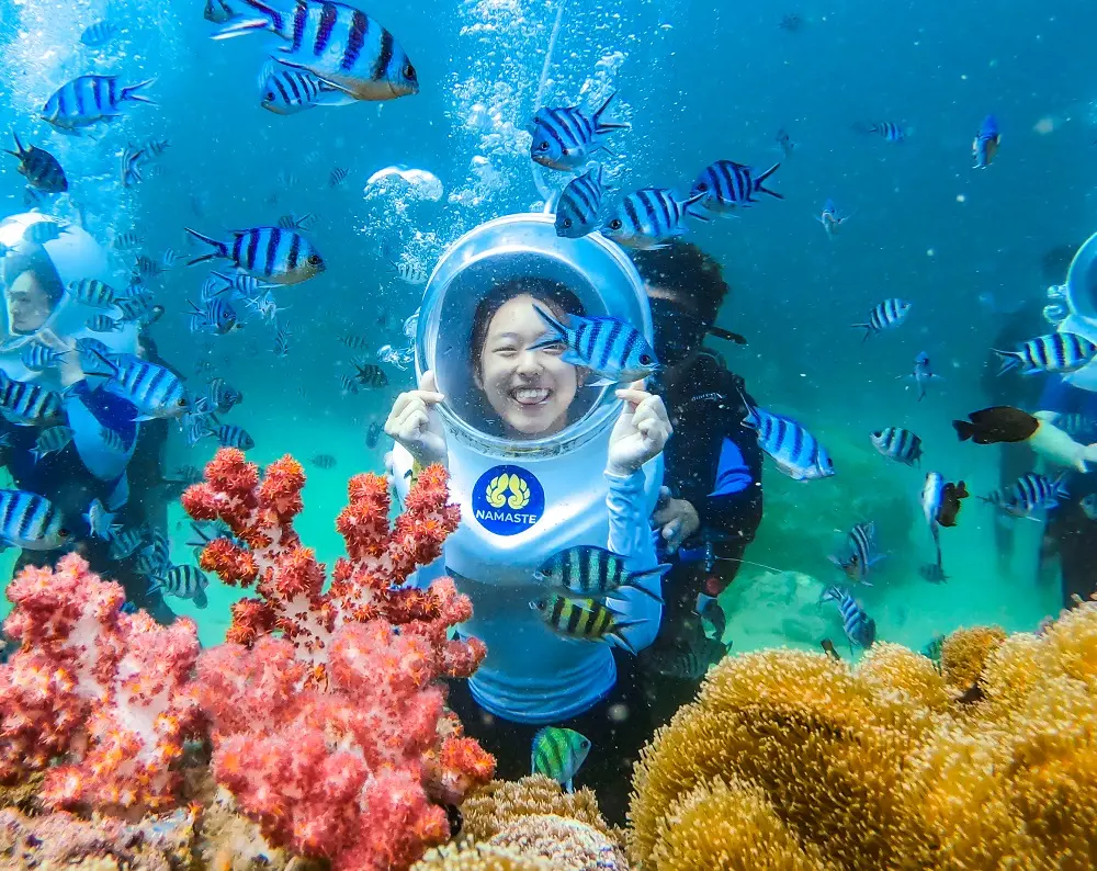 Bạn đã từng tự hỏi: Liệu có thể dạo bước dưới đáy biển, ngắm san hô, cho cá ăn mà không cần biết bơi? Với dịch vụ đi bộ dưới biển tại du thuyền Nautilus Namaste. Giấc mơ ấy không chỉ có thật mà còn diễn ra giữa một không gian sang trọng bậc nhất. Hãy để Let’s Fly Travel dẫn bạn vào hành trình khám phá đại dương kỳ diệu. Nơi từng bước chân mở ra cả một thế giới sống động đầy mê hoặc.