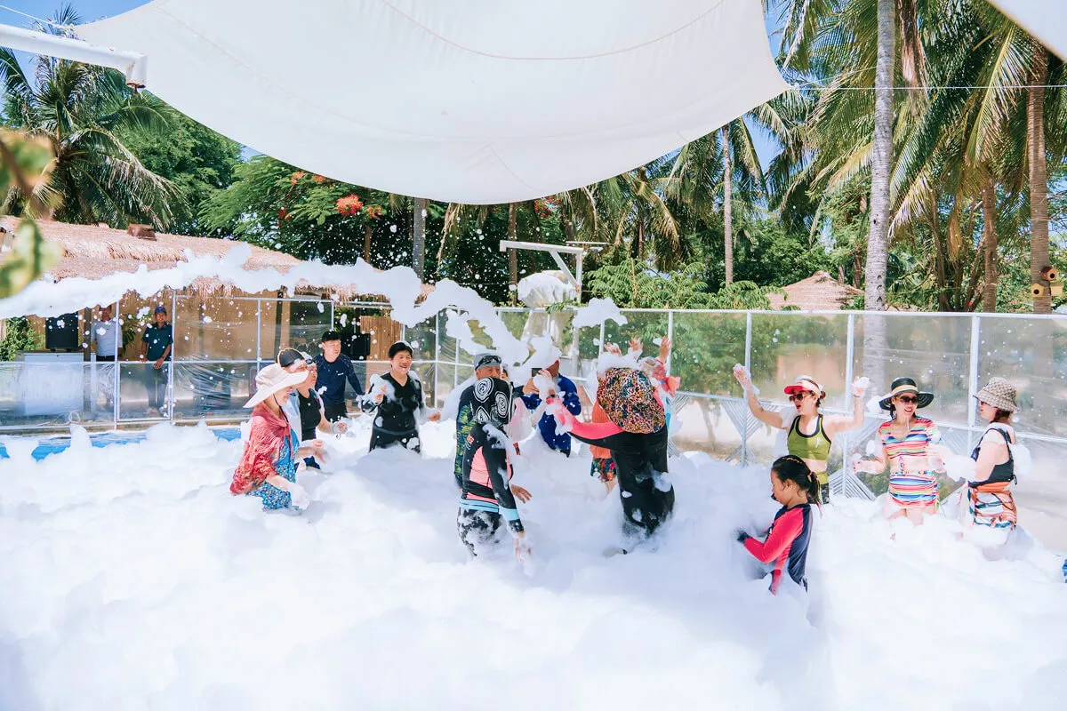 Vào những ngày đặc biệt, GreenOasis Đầm Bấy tổ chức ngày hội bọt tuyết. Một hoạt động vui nhộn được nhiều bạn trẻ yêu thích. Bọt tuyết trắng xóa phủ kín không gian tạo nên một sân chơi lý tưởng. Để bạn nhảy múa, chụp ảnh, và lưu giữ những kỷ niệm khó quên. Đây là một điểm nhấn độc đáo tại GreenOasis Đầm Bấy Nha Trang mà bạn không nên bỏ lỡ.