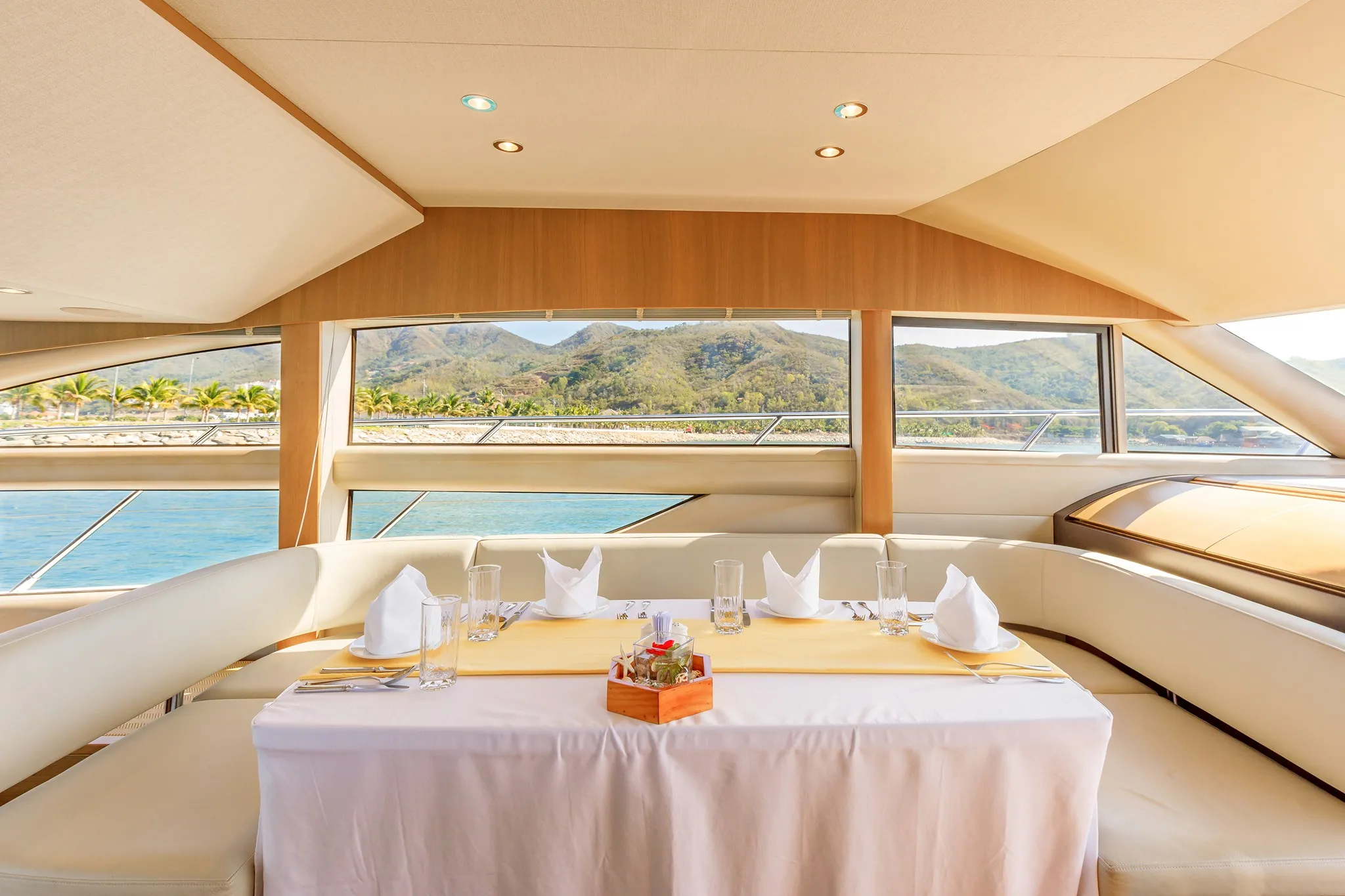Không giống những chuyến tham quan thông thường, tour ngắm hoàng hôn được tổ chức trên một du thuyền hiện đại, đẳng cấp quốc tế với các tiện nghi cao cấp. Ghế ngồi ngoài trời, quầy bar mini, khu ăn uống mở và âm nhạc nhẹ nhàng. Tất cả góp phần tạo nên một không gian thư giãn lý tưởng giữa lòng đại dương.