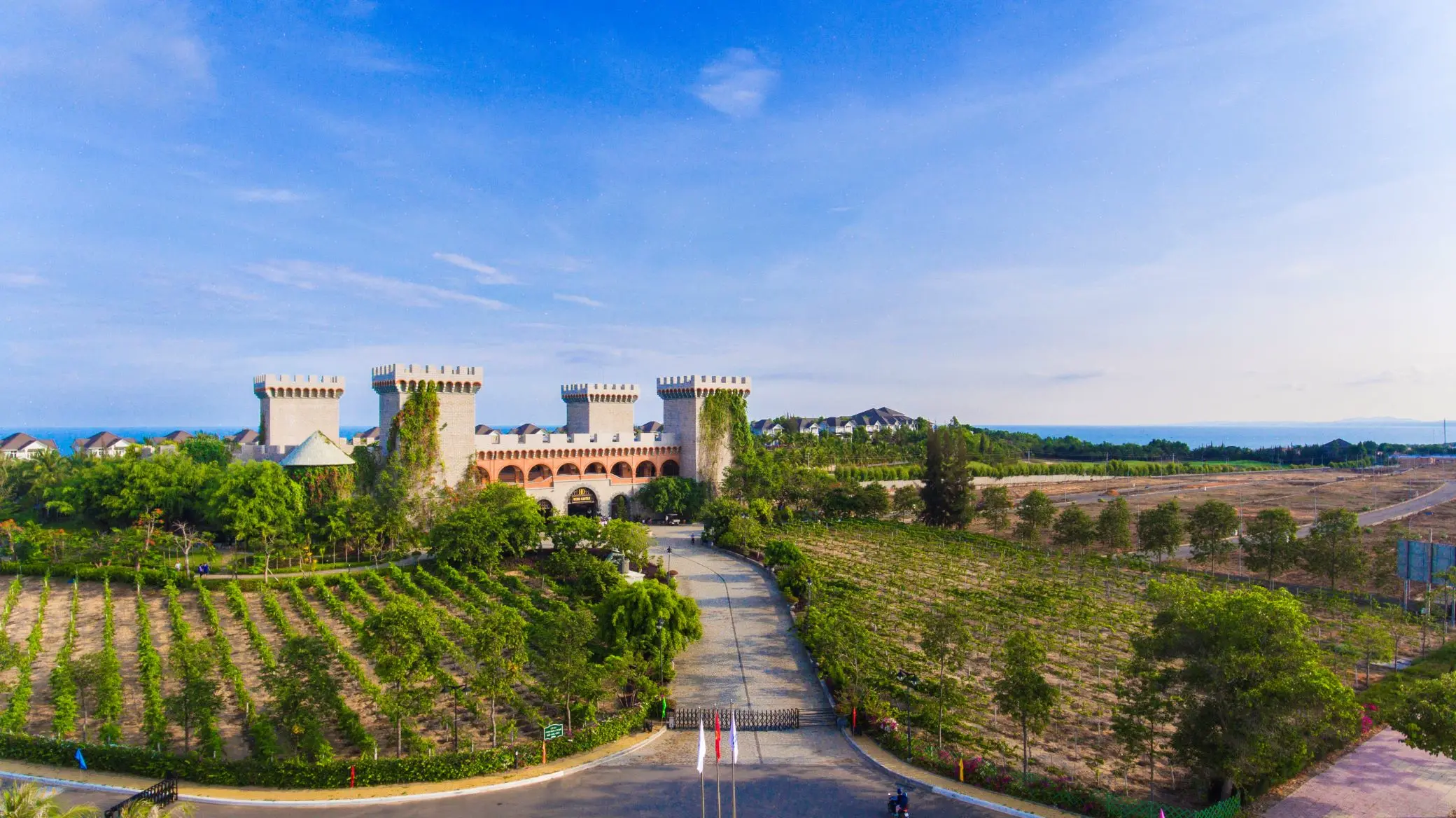 Giữa cái nắng đặc trưng và biển xanh của Phan Thiết, có một nơi khiến du khách ngỡ như đang lạc bước tại vùng Tuscany của nước Ý. Đó là lâu đài rượu vang Mũi Né – điểm đến mang đậm dấu ấn châu Âu đầu tiên tại Việt Nam dành riêng cho người yêu văn hóa, kiến trúc và rượu vang.