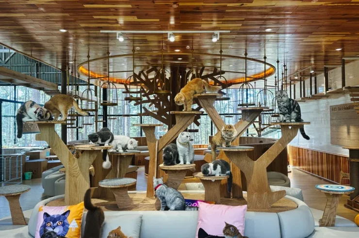 Khi bước chân vào Pawsome Haven Đà Lạt, bạn sẽ ngay lập tức bị bao vây bởi những chú mèo siêu cấp đáng yêu. Đến từ nhiều giống khác nhau như: Munchkin chân ngắn, mèo Anh lông dài, Bengal hoang dã, Maine Coon to lớn,… Không chỉ sở hữu vẻ ngoài nổi bật, các “boss” tại Pawsome Haven còn vô cùng thân thiện. Sẵn sàng đến gần để được vuốt ve và chơi đùa. Đây là trải nghiệm lý tưởng cho những ai muốn thư giãn, giảm căng thẳng. Hoặc đơn giản là tìm kiếm cảm giác ấm áp, bình yên bên những người bạn bốn chân.