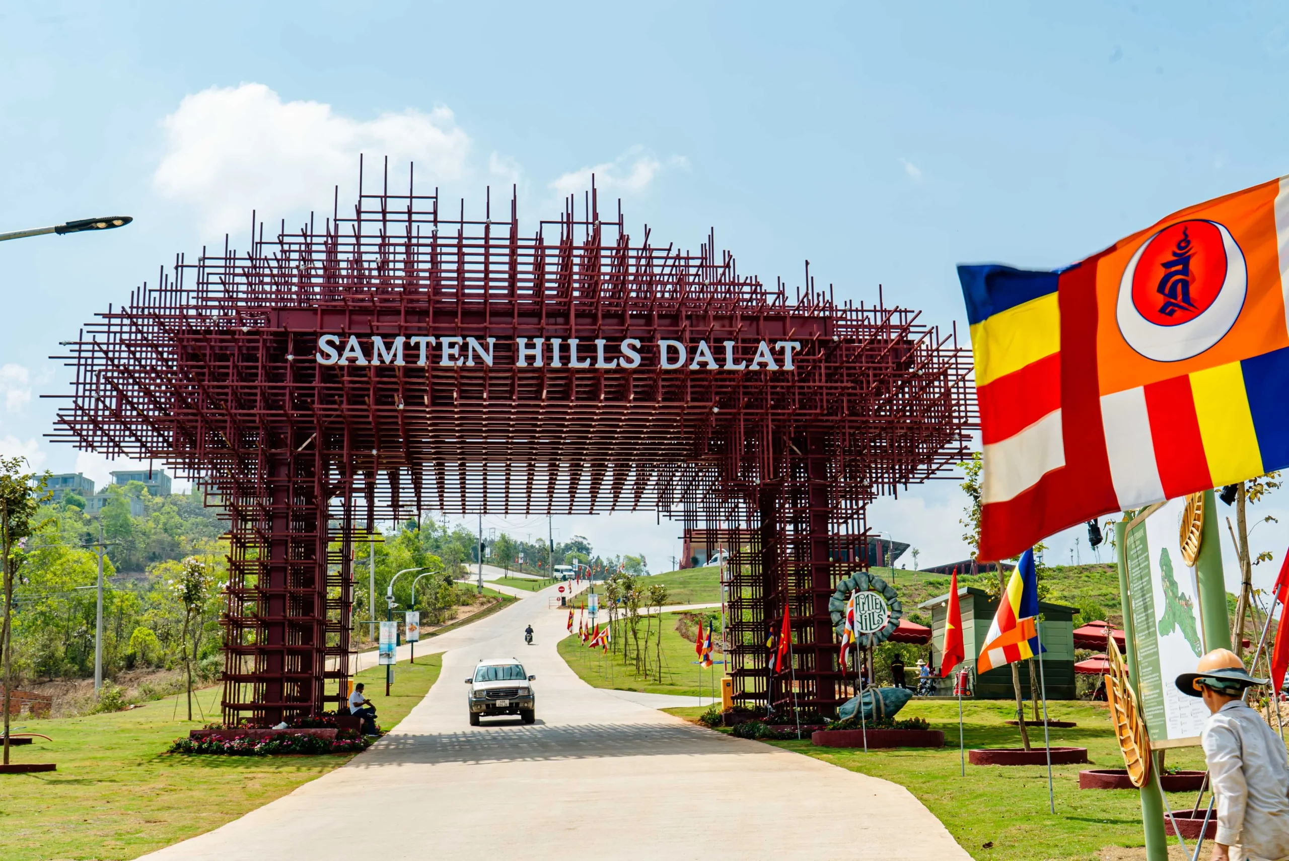 Ngay từ cổng vào, Samten Hills Đà Lạt gây ấn tượng với Đại Bảo Tháp Kinh Luân lớn nhất thế giới, được chế tác tinh xảo theo kiến trúc Tây Tạng.