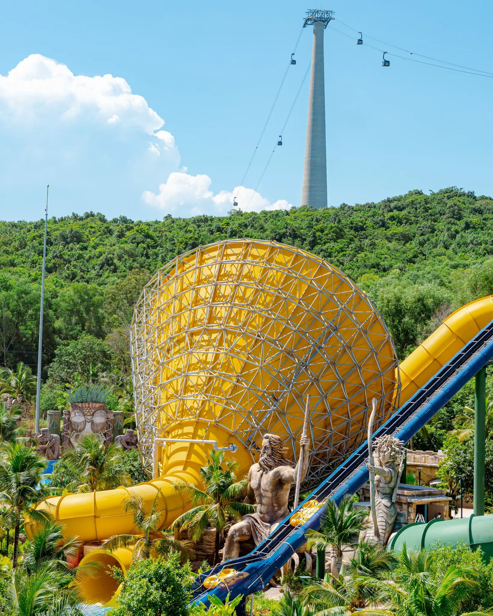 Nơi đây được xem như một viên ngọc quý giữa đại dương với bãi biển trong xanh, công viên nước đẳng cấp quốc tế, cùng hệ thống cáp treo ba dây vượt biển dài nhất thế giới. Nếu bạn đang tìm kiếm một địa điểm vừa có cảnh đẹp, vừa có trò chơi thú vị thì Sun World Hòn Thơm chính là gợi ý hoàn hảo.