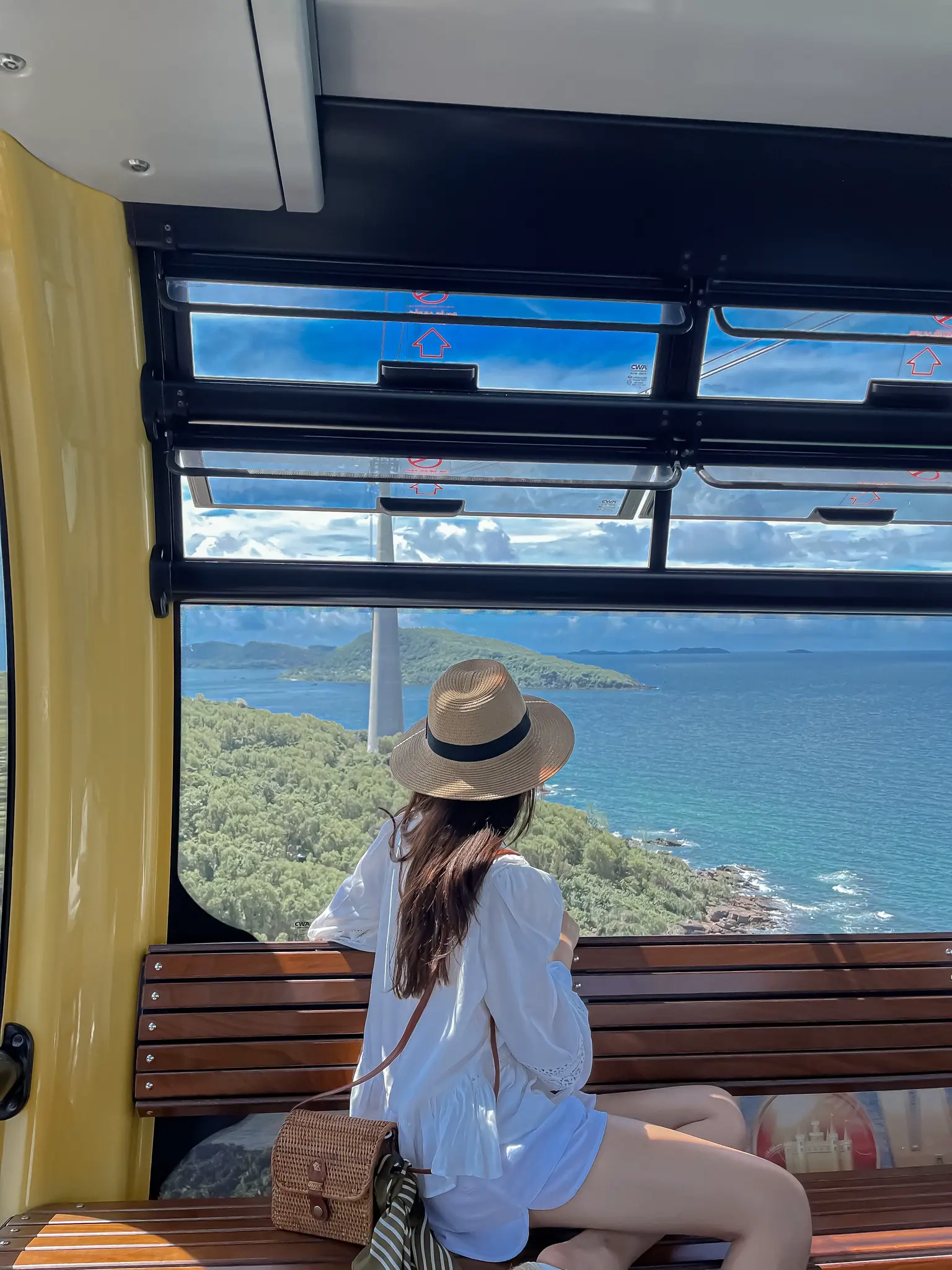 Trên cabin cao hàng trăm mét, du khách sẽ được chiêm ngưỡng toàn cảnh trời biển bao la, sóng nước lấp lánh dưới ánh nắng, tạo nên một bức tranh thiên nhiên sống động và ngoạn mục.