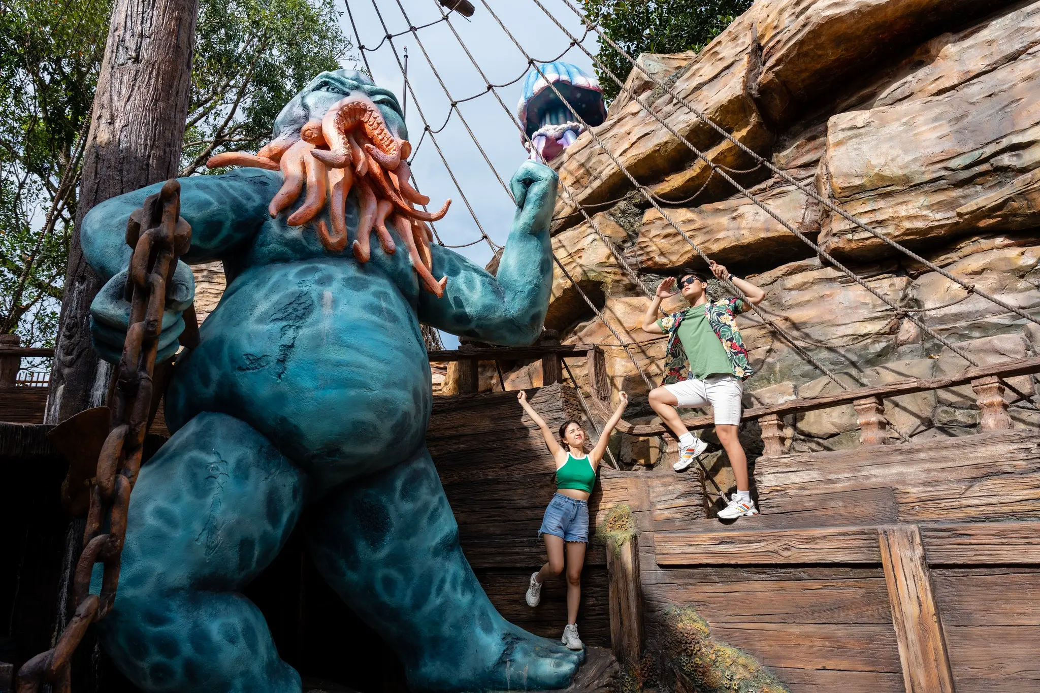 Không gian công viên chia thành nhiều phân khu chủ đề như Vùng đất thổ dân, Làng hải tặc, Rừng rắn khổng lồ,… mỗi khu vực đều có điểm nhấn riêng biệt.