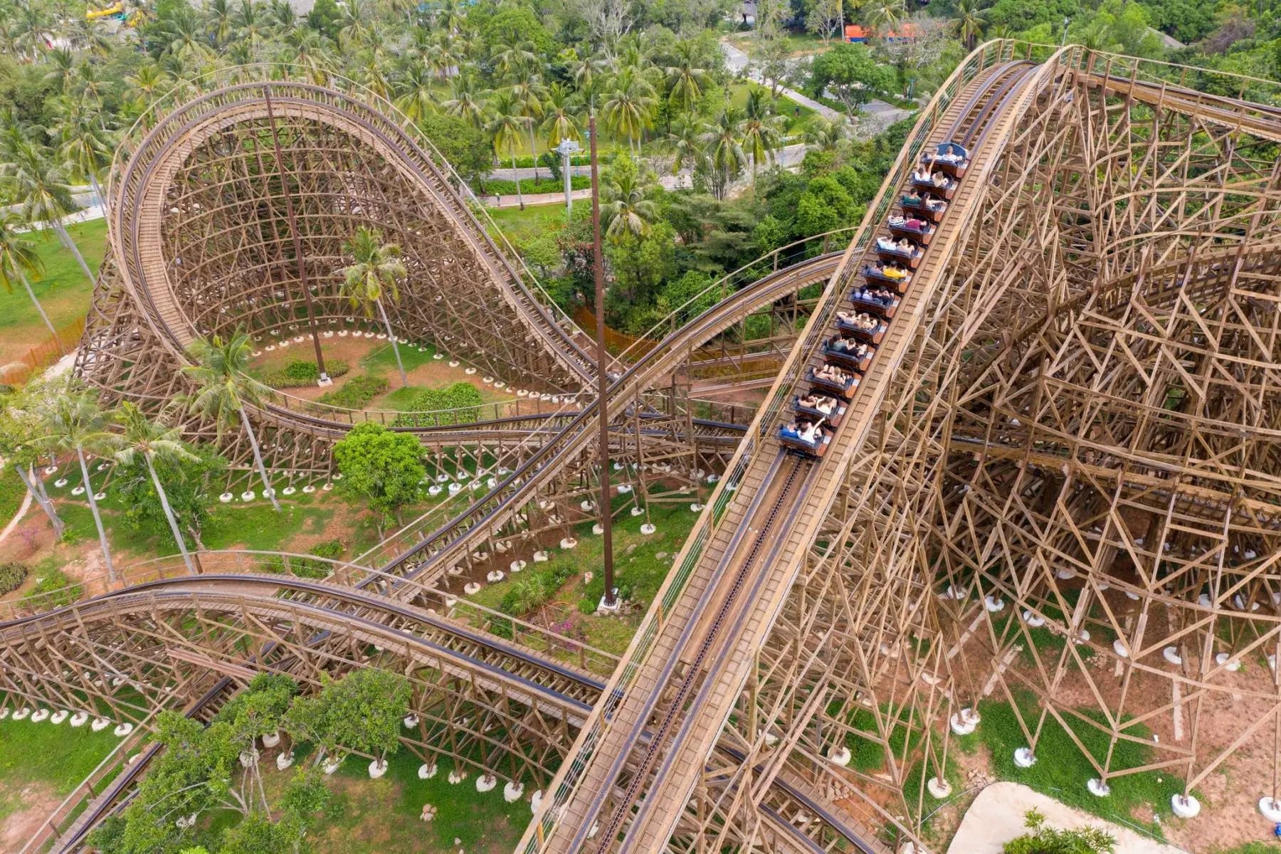 - Mộc xà thịnh nộ: Tàu lượn siêu tốc bằng gỗ đầu tiên tại Việt Nam, dài hơn 1.200m, tốc độ lên đến 80km/h. Mang đến cảm giác “rụng tim” ở từng khúc cua gắt.